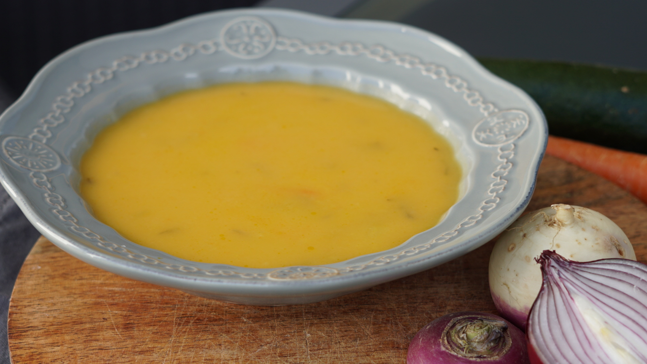 - Coloque água, 2 colheres de azeite, uma pitada de sal e os legumes numa panela durante 30min e deixe cozer.